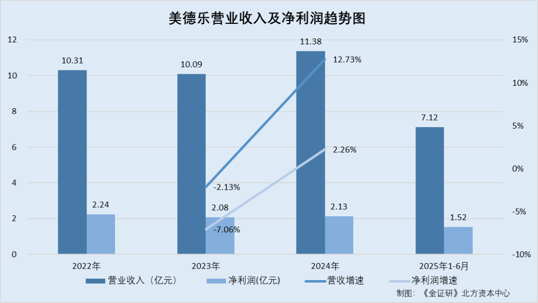 此外,美德乐2025年半年报显示,2025年1-6月,美德乐停业收入及净利润别离为7。12亿元、1。52亿元。同期,美德乐停业收入增速及净利润增速别离为35。13%、58。87%。