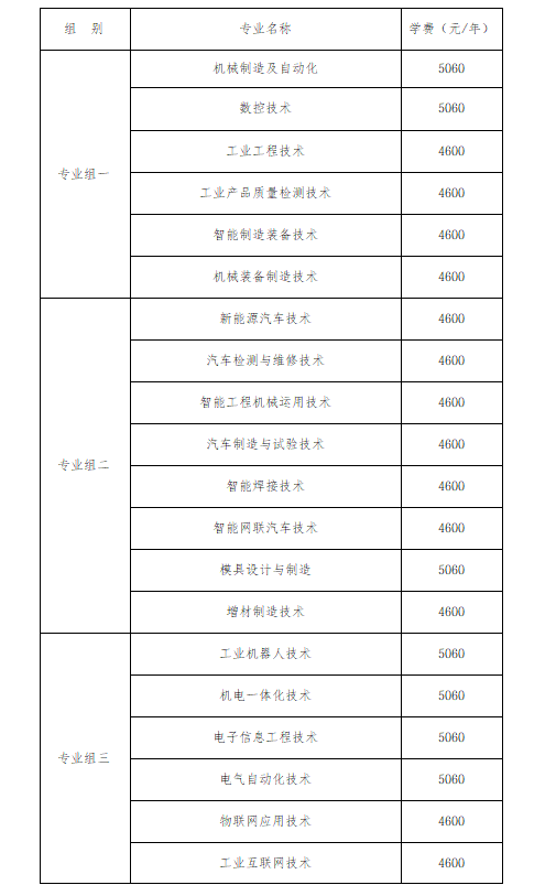 专业组二聚焦汽车及相关制制类专业,涵盖新能源汽车手艺、汽车检测取维修手艺等8个专业,此中模具设想取制制膏火为5060元/年,包含当下抢手的新能源汽车、智能网联汽车相关专业,就业前景广漠。专业组三以电气取从动化类专业为从,包含工业机械人手艺、电子消息工程手艺、电气从动化手艺、物联网使用手艺、工业互联网手艺6个专业,前4个专业膏火为5060元/年,物联网使用手艺、工业互联网手艺膏火为4600元/年,契合智能化财产成长趋向。专业组四为消息手艺类专业,包含计较机收集手艺、挪动使用开辟、软件手艺、大数据手艺、云计较手艺使用5个专业,其入彀算机收集手艺、软件手艺膏火为7800元/年,其余3个专业膏火为4600元/年,适配数字经济成长需求。